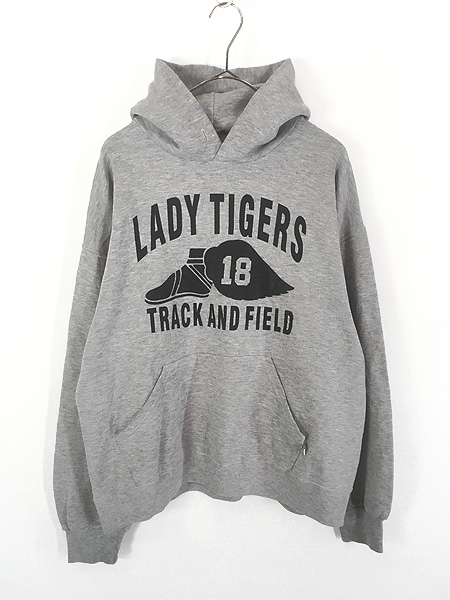 レディース 古着 90s Russell 「LADY TIGERS TRACK AND FIELD」 ウィングフット スウェット パーカー L