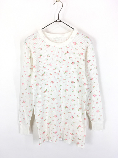 レディース 古着 80s 小花柄 総柄 プリント ワッフル サーマル シャツ トップス XL