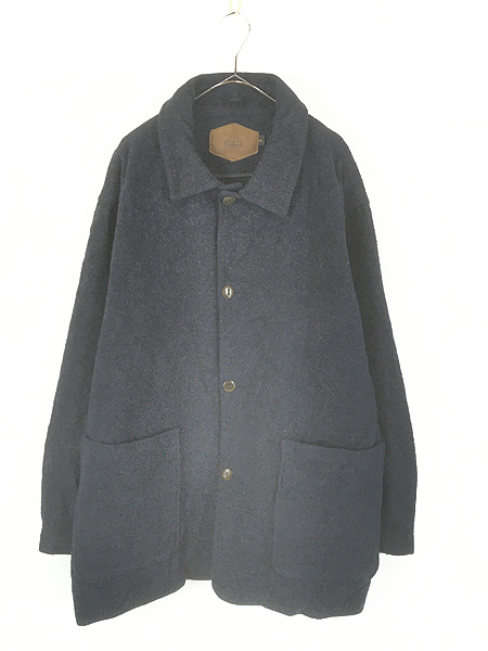 古着 90s WoolRich メルトン ウール ブランケット カバーオール ジャケット ダークネイビー XL