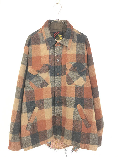 古着 60s MAIN GUIDE ブラック タータン チェック ヘビー ウール ボックス シャツ ジャケット XL位