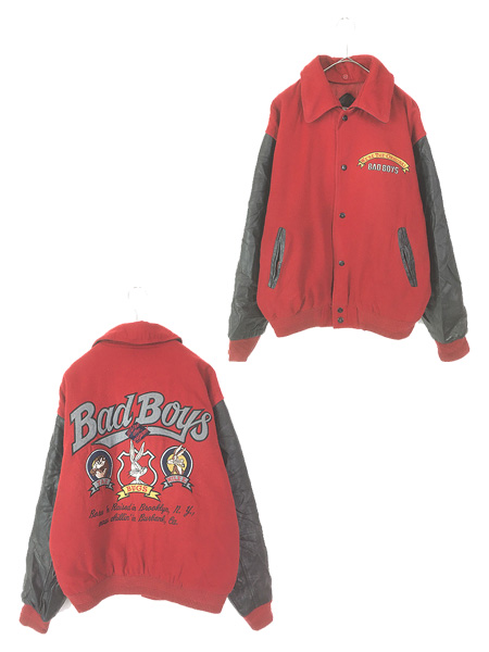 古着 90s Def Jam University ヒップホップ ラップ 本革 レザー × ウール スタジアム ジャケット スタジャン 2XL【10off】