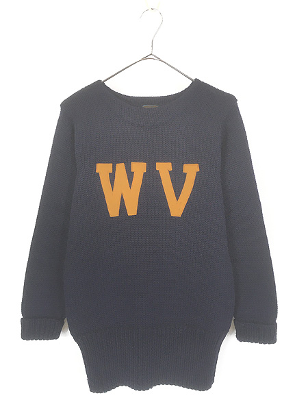 古着 30s Champion 「OLYMPIC」 青タグ WV フェルト パッチ 畦編み ローゲージ レタード セーター M位 極上!!