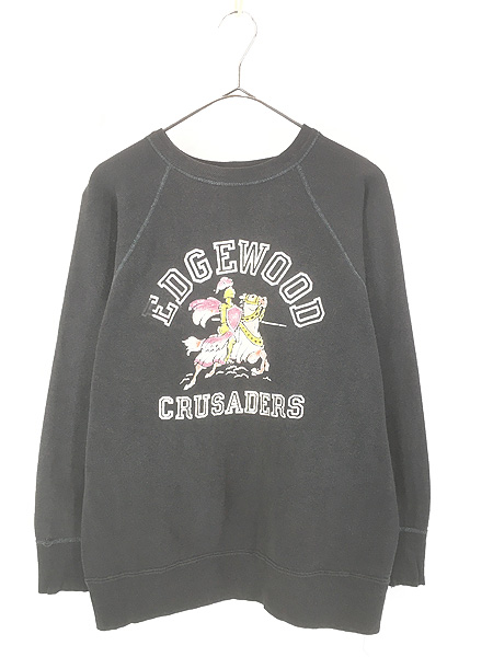 古着 50-60s 「EDGEWOOD CRUSADERS」 騎士 カラー フロッキー 100%コットン スウェット トレーナー ブラック!! XL位