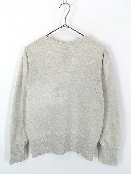 古着 40-50s 針抜きリブ 2tone 霜降り 100%コットン はめ込み 前V ヴィンテージ スウェット トレーナー L位