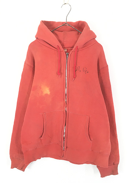 古着 50s Hanes Wind Shield 無地 ソリッド 裏サーマル ダブルフェイス スウェット ジップ パーカー L