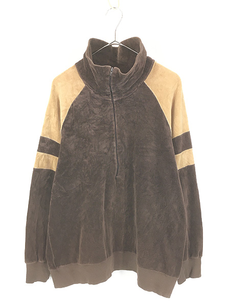 古着 80s Saks Fifth Avenue 2tone 光沢 ベロア ベルベット スタンドカラー ジャージ トップ トラックスーツ XL位