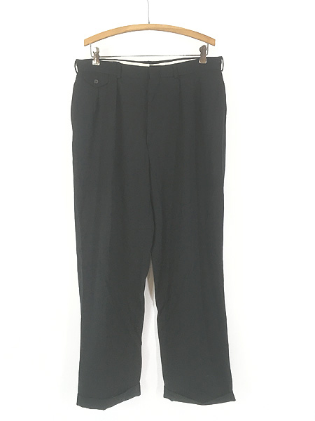 古着 90s USA製 Polo Ralph Lauren 無地 ソリッド ウール タック スラックス パンツ 黒 W35 L31
