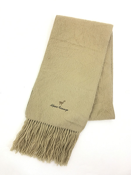雑貨 古着 80s Peru製 ALPACA CAMARGO ロゴ 刺しゅう アルパカ ウール マフラー ストール