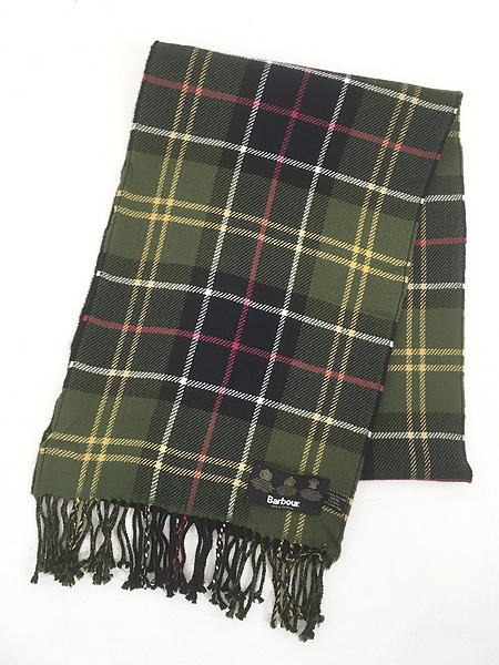雑貨 古着 Scotland製 Barbour チェック× ブラウン 無地 ウール マフラー ストール