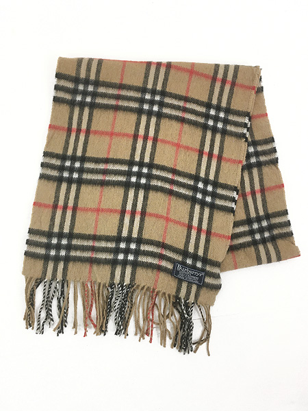 雑貨 古着 90s England製 Burberrys バーバリー チェック 高級 100% カシミア マフラー ストール ベージュ