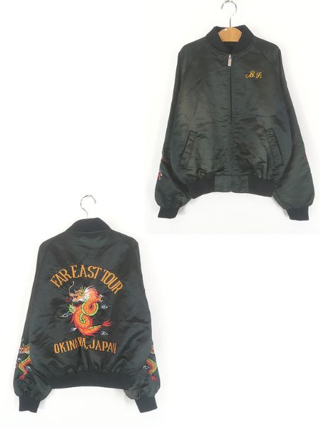 キッズ 古着 80s Far East Tour 「OKINAWA JAPAN」 ドラゴン 刺繍 サテン ツアー スーベニア ジャケット 13-14歳位