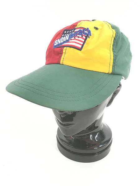 雑貨 古着 90s USA製 Polo Ralph Lauren 「SNOW beach」 クレイジー パターン 6パネル キャップ 帽子 M