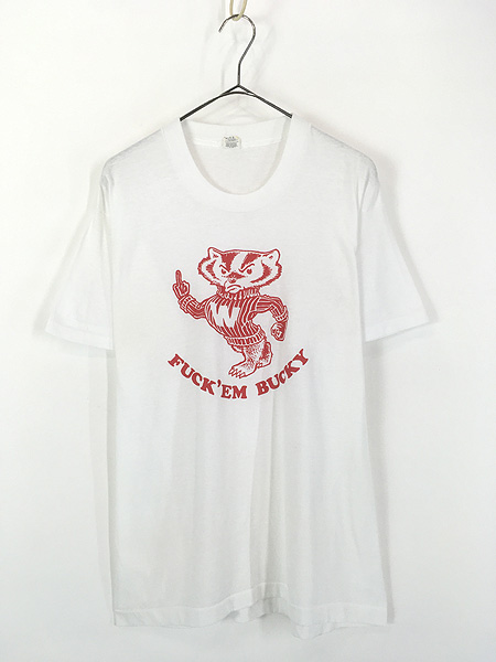 古着 80s USA製 「FUCK'EM BUCKY」 バッキー 中指 50/50 カレッジ パロディ Tシャツ XL