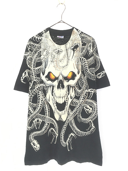 古着 90s USA製 LIQUID BLUE 「Medusa」 メデューサ スカルスネーク オールオーバー Tシャツ L