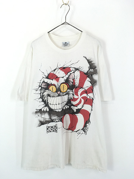 古着 90s USA製 Alice in Wonderland 不思議の国のアリス 「Cheshire Cat」 アート Tシャツ XL