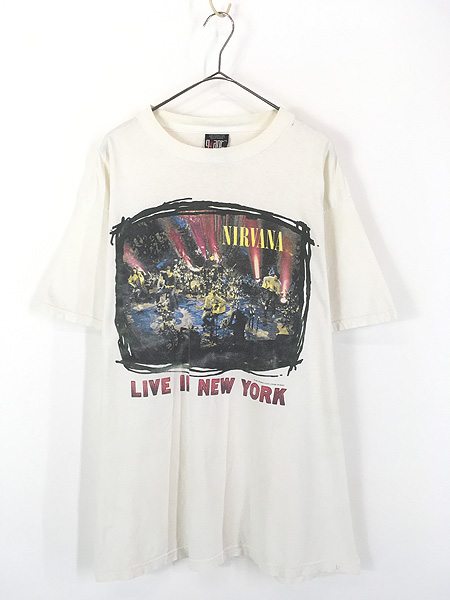 古着 90s USA製 NIRVANA 「LIVE IN NEW YORK」 MTV Unplugged フォト グランジ ロック バンド Tシャツ XL