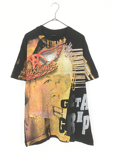 古着 90s USA製 AERO SMITH 「GET A GRIP」 オールオーバー ハード ロック バンド Tシャツ L