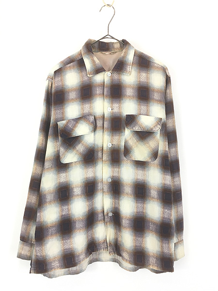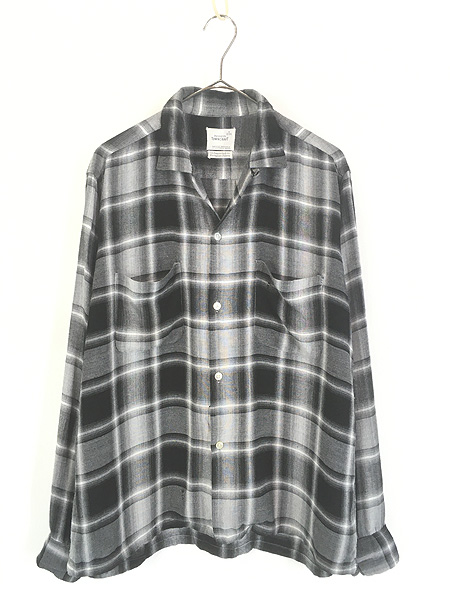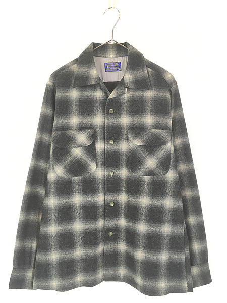 古着 50s Pendleton ブラック × ホワイト オンブレ シャドー チェック 開襟 ボックス ウール ボード シャツ M ミント!!