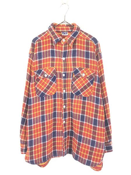 古着 40s Pilgrim マチ付 好配色 チェック ヘビー フランネル シャツ ヘビネル XL位
