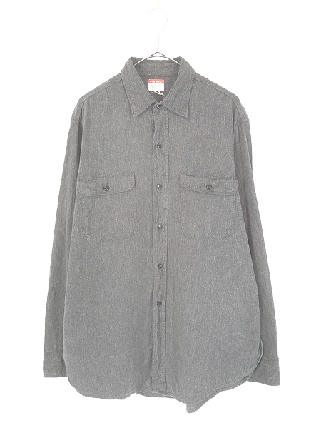 古着 50s BIG MAC Penney's マチ付 フラポケ 100%コットン ブラック シャンブレー デニム ワーク シャツ 黒シャン XL位