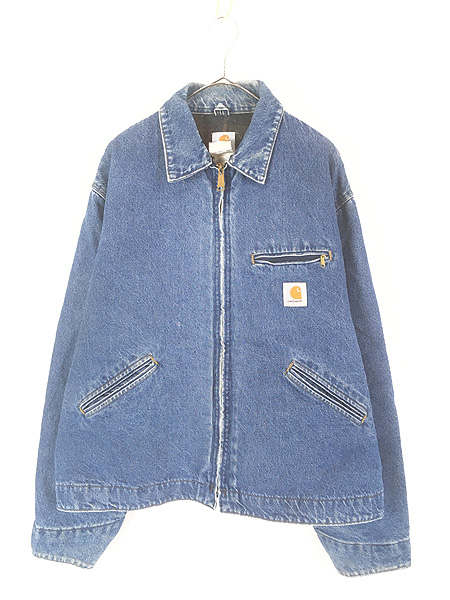 古着 00s USA製 Carhartt チェック ブランケット ライナー 濃紺 ブルー デニム デトロイト ジャケット XL-R