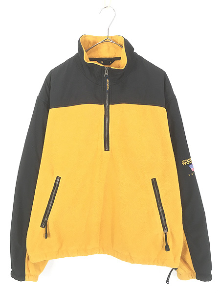古着 90s WoolRich 「John Rich & Bros」 イエロー × ブラック ハーフジップ アノラック フリース ジャケット M