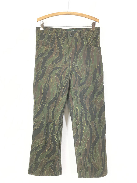 古着 80s Bass Pro Shops タイガー ストライプ カモ 迷彩 4ポケット コットン アウトドア パンツ 32
