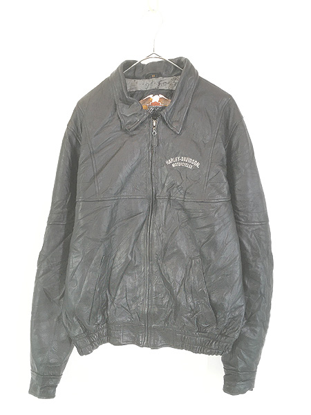 古着 HARLEY DAVIDSON ワンポイント 刺しゅう 本革 レザー ジャケット ブルゾン M