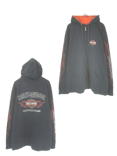 古着 HARLEY DAVIDSON フード裏 サーマル バー&シールド 刺しゅう スウェット ジップ パーカー XL