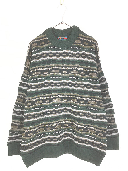 古着 90s Australia製 FAR HORIZONS 3D ランダム ハニカム アート ウール ニット セーター XL