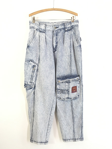 古着 90s COTLER 2タック ケミカル デニム カーゴ パンツ ジーンズ テーパード W31 L29