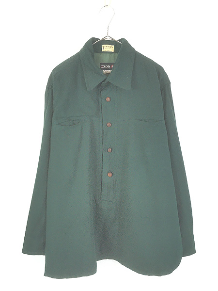 古着 70s IZOD × A.M.BURNS 本革 エルボー パッチ ハーフボタン プルオーバー ウール シャツ XL位