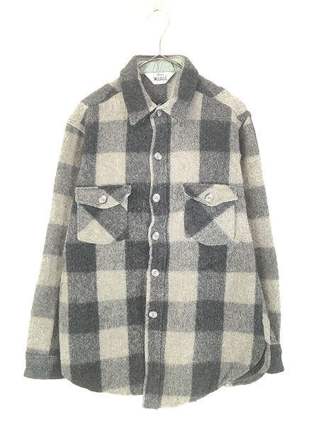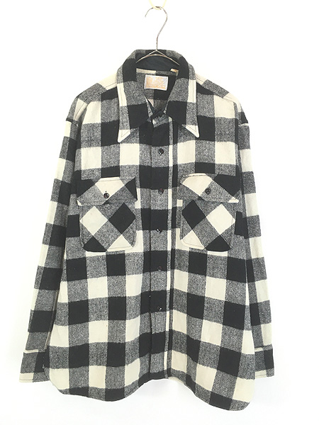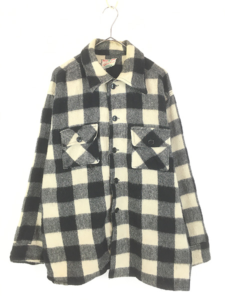 古着 60s Canada製 FALCON BRAND ブラック × ホワイト ブロック チェック ヘビー ウール ボックス シャツ L位