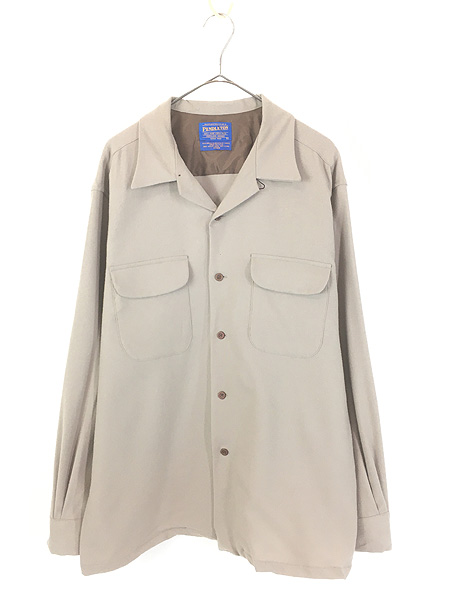 古着 90s- Pendleton ベージュ ソリッド 開襟 ボックス ウール ボード シャツ L