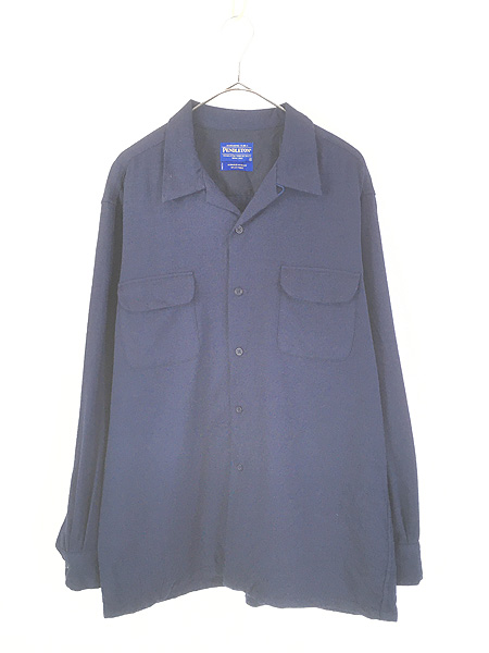 古着 00s Pendleton 「Board Shirt」 インディゴ ヘリンボーン ストライプ 開襟 ボックス ウール ボード シャツ L