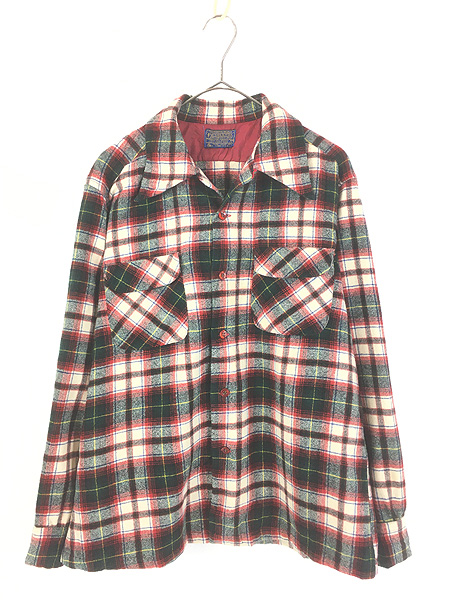 古着 60s USA製 Pendleton タータン チェック 開襟 ボックス ウール ボード シャツ L