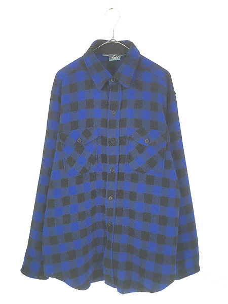 古着 90s USA製 WoolRich ブラック × ブルー ブロック チェック ウール シャツ L