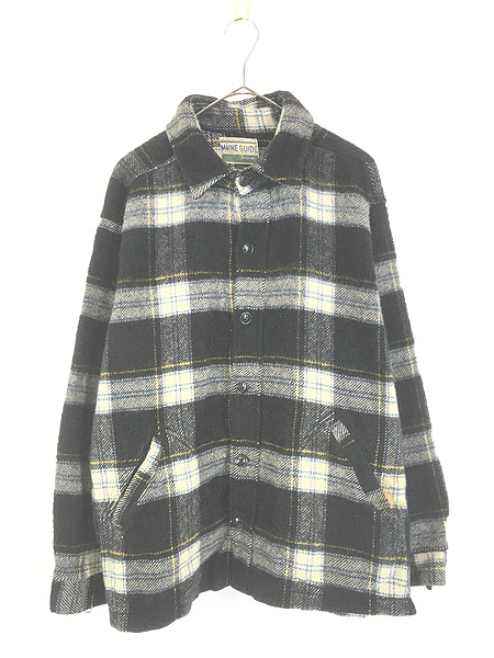 古着 60s MAIN GUIDE ブラック タータン チェック ヘビー ウール ボックス シャツ ジャケット XL位