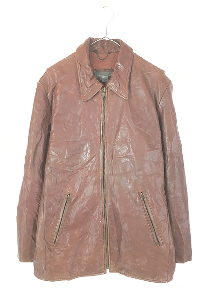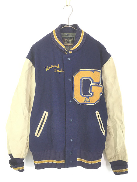 古着 50s Whiting 豪華 2段 チェーンステッチ 本革 レザー × メルトン ウール スタジアム ジャケット スタジャン 48