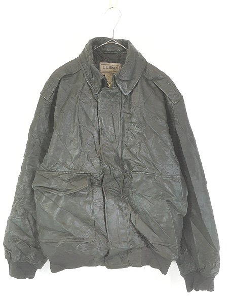 古着 00s LL Bean Type A-2 本革 ゴートスキン レザー パデッド フライング タイガー ジャケット オールブラック M-R