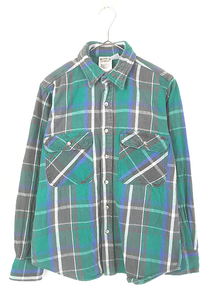 古着 90s FIVE BROTHER グリーン チェック ヘビー フランネル シャツ ヘビネル M