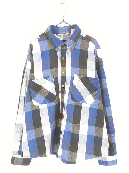 古着 90s USA製 BIG MAC 好配色 ブラック×ブルー×ホワイト ブロック チェック ヘビー フランネル シャツ ヘビネル XL位