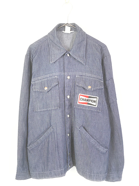 古着 70s USA製 CHAMPION SPARK PLUG オフィシャル バットダイ デニム モーター レーシング ジャケット L