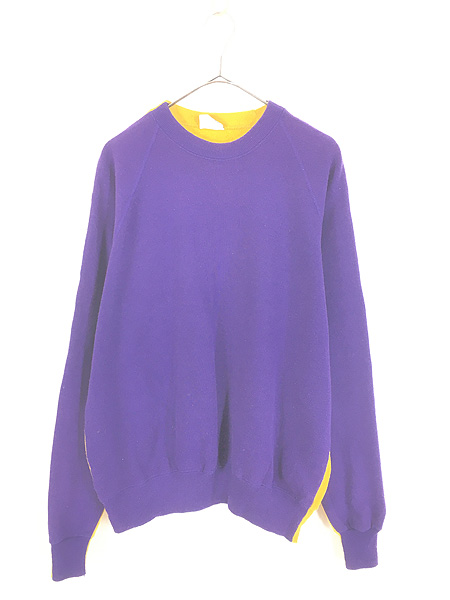 古着 80s Lee パープル × イエロー 2tone セパレート リメイク ラグラン スウェット トレーナー XL位