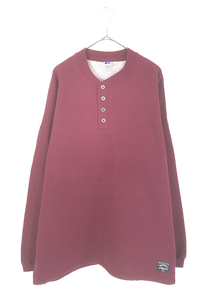 古着 90s USA製 Russell 無地 ソリッド セットイン ハーフボタン ヘンリー スウェット トレーナー ワイン XL