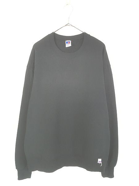古着 90s USA製 Russell 無地 プレーン 前V セットイン スウェット トレーナー ブラック L
