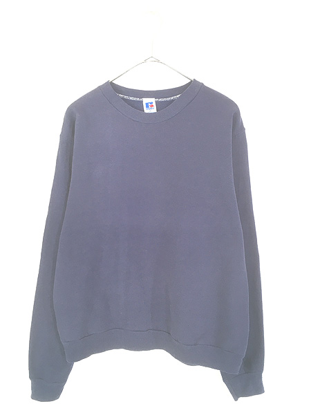 古着 80s USA製 Russell 無地 プレーン セットイン スウェット トレーナー ネイビー M