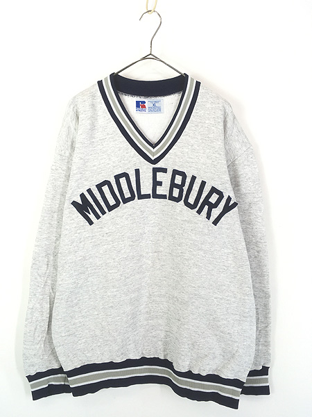 古着 90s USA製 Russell 「MIDDLEBURY」 Vネック ラインリブ セットイン スウェット トレーナー XL