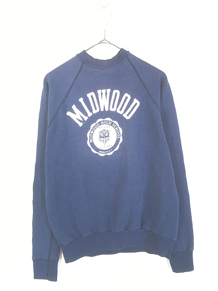 古着 70s USA製 TULTEX 「MIDWOOD」 2段 ラグラン スウェット トレーナー ネイビー L
