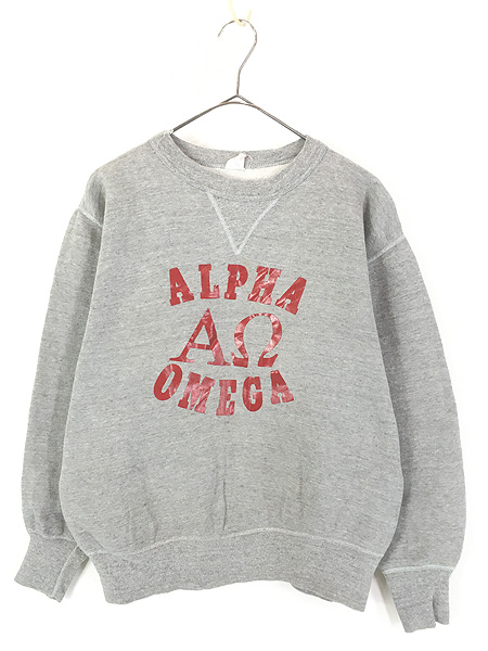 古着 60s USA製 Russell 「ALPHA OMEGA」 100%コットン 前V ヴィンテージ スウェット トレーナー M